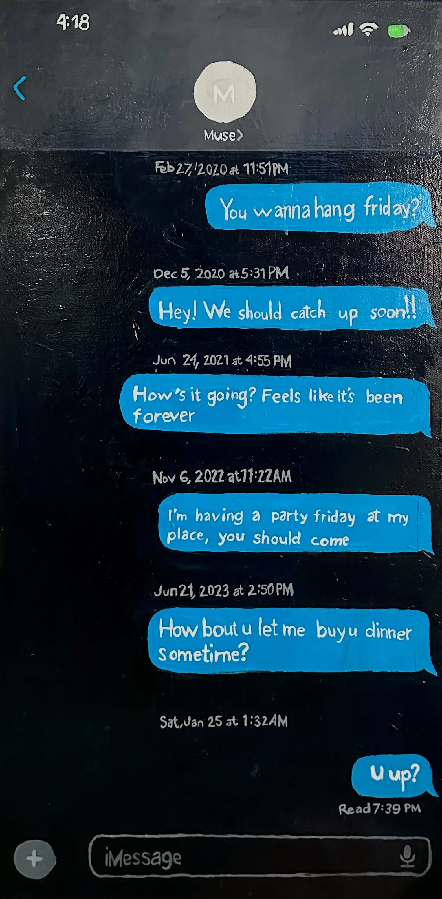 Who are we because of our art? As an artist I’m often consumed by the need to make art but how healthy is that? What is my relationship with my art? Below is a series in progress about my relationship with creativity/inspiration. Stay tuned to see as new pieces are created.